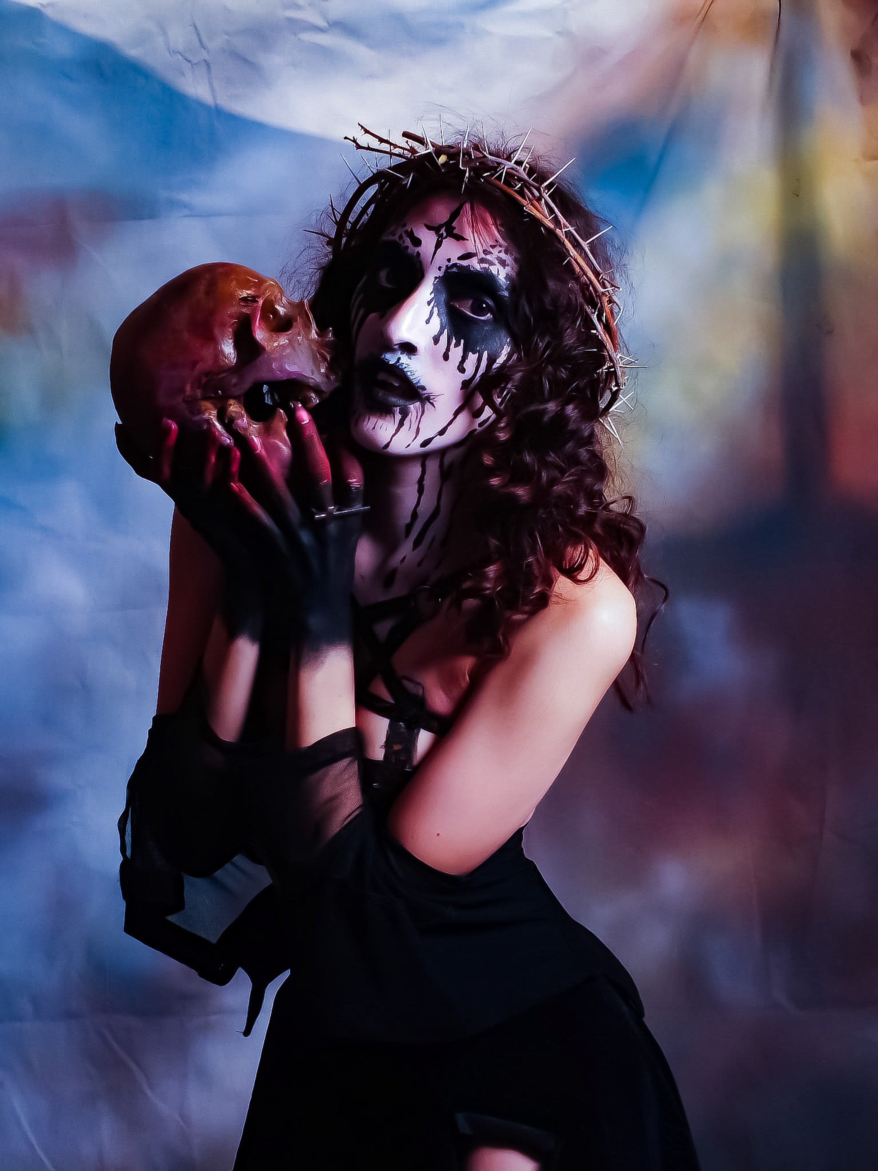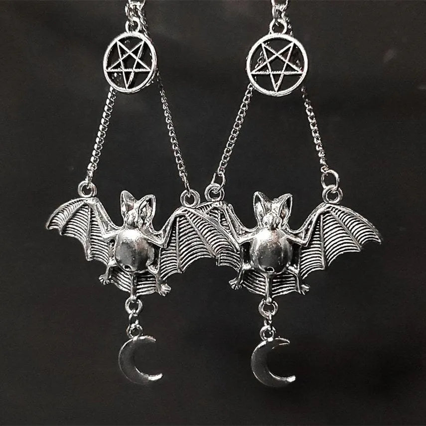 Gothic Crow Skull Pentagram Earrings Asymmetric Design