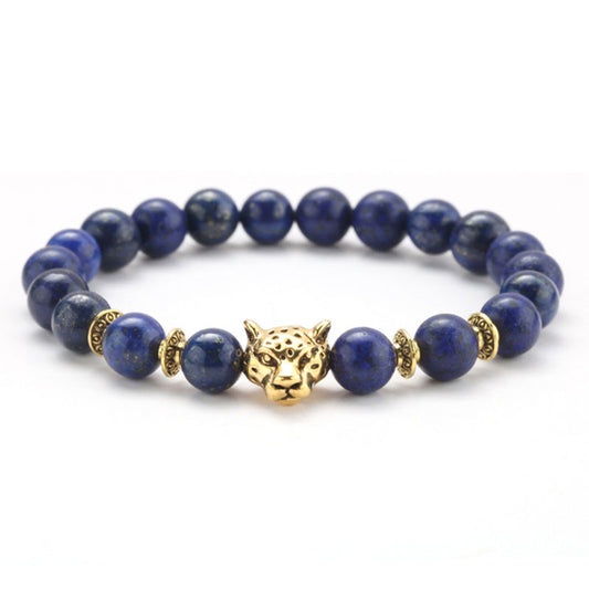 8mm Volcanic Stone Onyx Alloy Leopard Head Beaded Bracelet