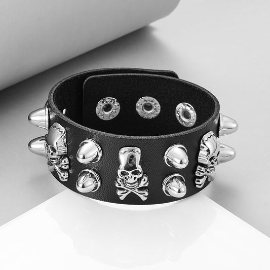 Skull Punk Leather Bracelet