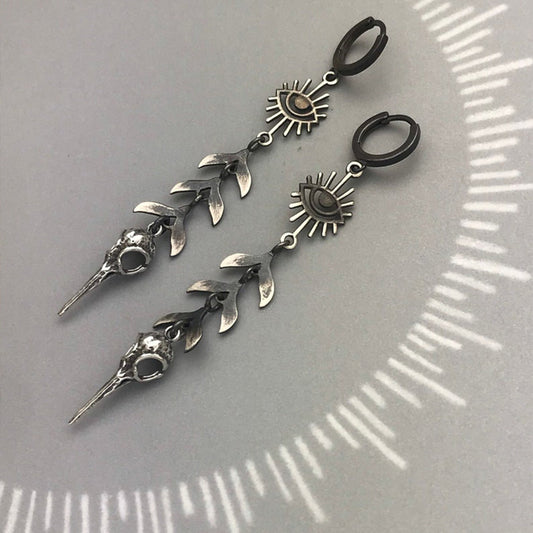 Gothic Crow Skull Pentagram Earrings Asymmetric Design
