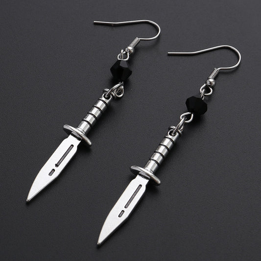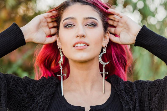 Hollow Moon Witch Gothic Long Sword Halloween Earrings