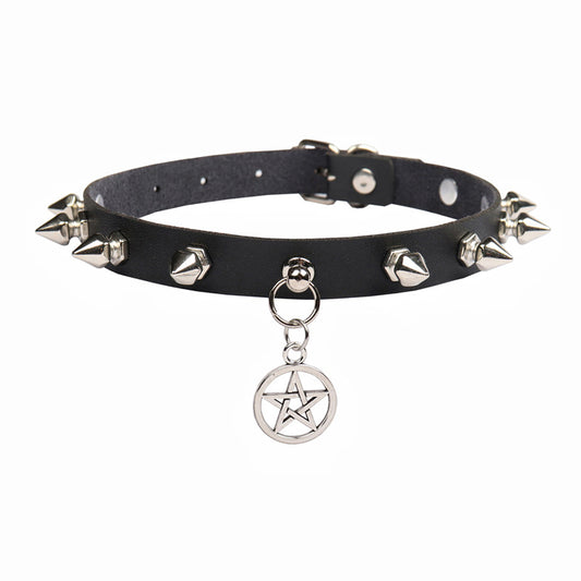Dark Personality Punk Retro Harajuku Pentagram Leather Collar
