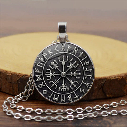 Viking Odin Logo Compass Time Gem Necklace Sweater Chain