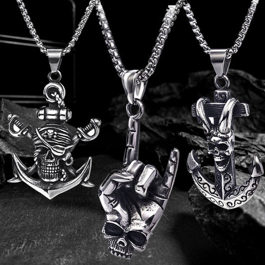 Retro Hip Hop Punk Stainless Steel Skull Pendant Necklace