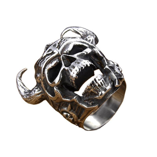 European And American Fashion Skull Head Imitation Stainless Steel Clown Ring Gothic Men's Jewelry Ring